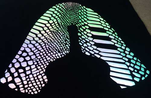1、先用膠水打底一次 → 2、用銀粉與膠水?dāng)嚢杈鶆蛴〉诙?→ 3、直接印反光粉(不用加膠水),→用平壓機(jī)將反光粉壓入膠水的半徑厚度即可。